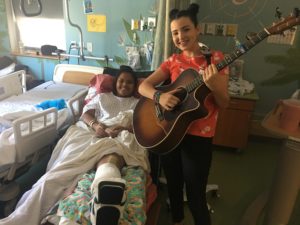 KIMMER HORSEN plays ukulele and guitar for the patients at SHRINERS HOSPITAL