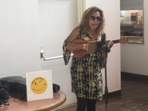KIMMER HORSEN plays ukulele and guitar for the patients at SHRINERS HOSPITAL