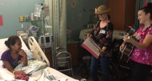 KIMMER HORSEN plays ukulele and guitar for the patients at SHRINERS HOSPITAL