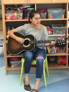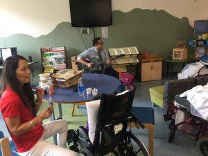 KIMMER HORSEN plays ukulele and guitar for the patients at SHRINERS HOSPITAL